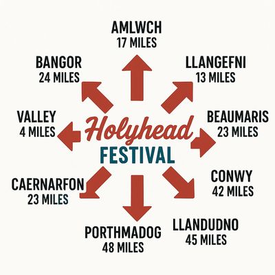 Whether you're coming from near or far, reaching the festival is simple! Located just off the A55, it's a smooth and scenic drive that brings you right to the heart of the action. No matter where you're traveling from, Holyhead Festival is within easy reach.